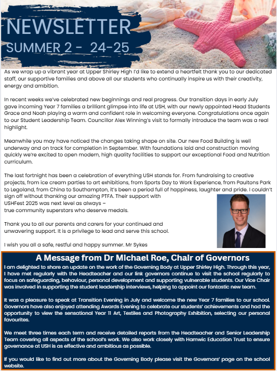 I am immensely proud to be Headteacher of our values led family school. We are passionate about providing young people with opportunities to develop their own individual unique talents and be the best that they can be. USH students are truly inspiring; they are respectful, eloquent, and full of character. Read more from Headteacher Chris Sykes